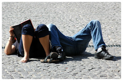 Bravo à l'éditeur du magazine de la photo du bas : quel talent pour captiver autant ses lecteurs qui en ont oublié la dureté du sol !!